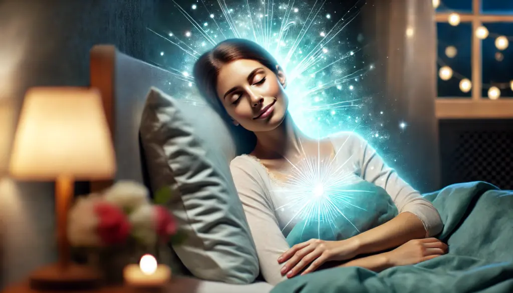 寝る前にベッドに横になった状態で、静かに目を閉じます。